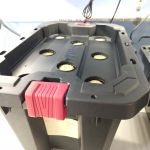 Then I put in one of my AGPtek pond foggers, plugged her in and secured the lid. I use 1.75″ plastic netpots to hold rockwool cubes which serve as the collars for the plants. Collars are a critical part of any aeroponics system and subject to further experiment in my laboratory here. I have tried a few different things in the past, but don’t yet have any great insight in to which is better than the other.